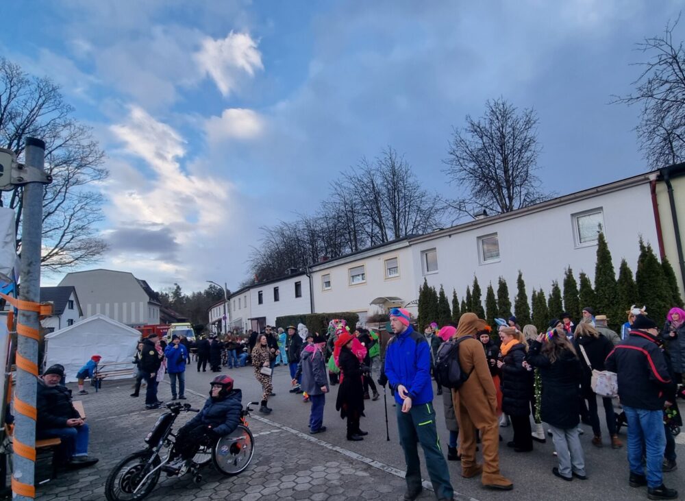 KUV Concordia Lustheim e.V., ein gemeinnütziger Verein, den es schon 125 Jahre gibt, organisiert alljährlich diesen Straßenfasching. Dieser gilt im Landkreis München übrigens als Geheimtipp. Dazu wird die Hochmuttingerstraße auf Höhe des Restaurants “Zum Kurfürst” bis zum Ende der Häuserzeile für den ganzen Nachmittag gesperrt und dann weiß jeder, was er zu tun hat: “Same procedure as every year!” Und es sind unermüdlich, immer wieder dieselben Helferinnen und Helfer, Lustheimer Familien, Anwohner und Fans — manche Lustheimer Familien sind schon ihr ganzes Leben lang dabei. Die Stände, das Musikzelt werden aufgebaut, die Tanz- und Begegnungsfläche ist die Straße. So einfach ist das und so schön!